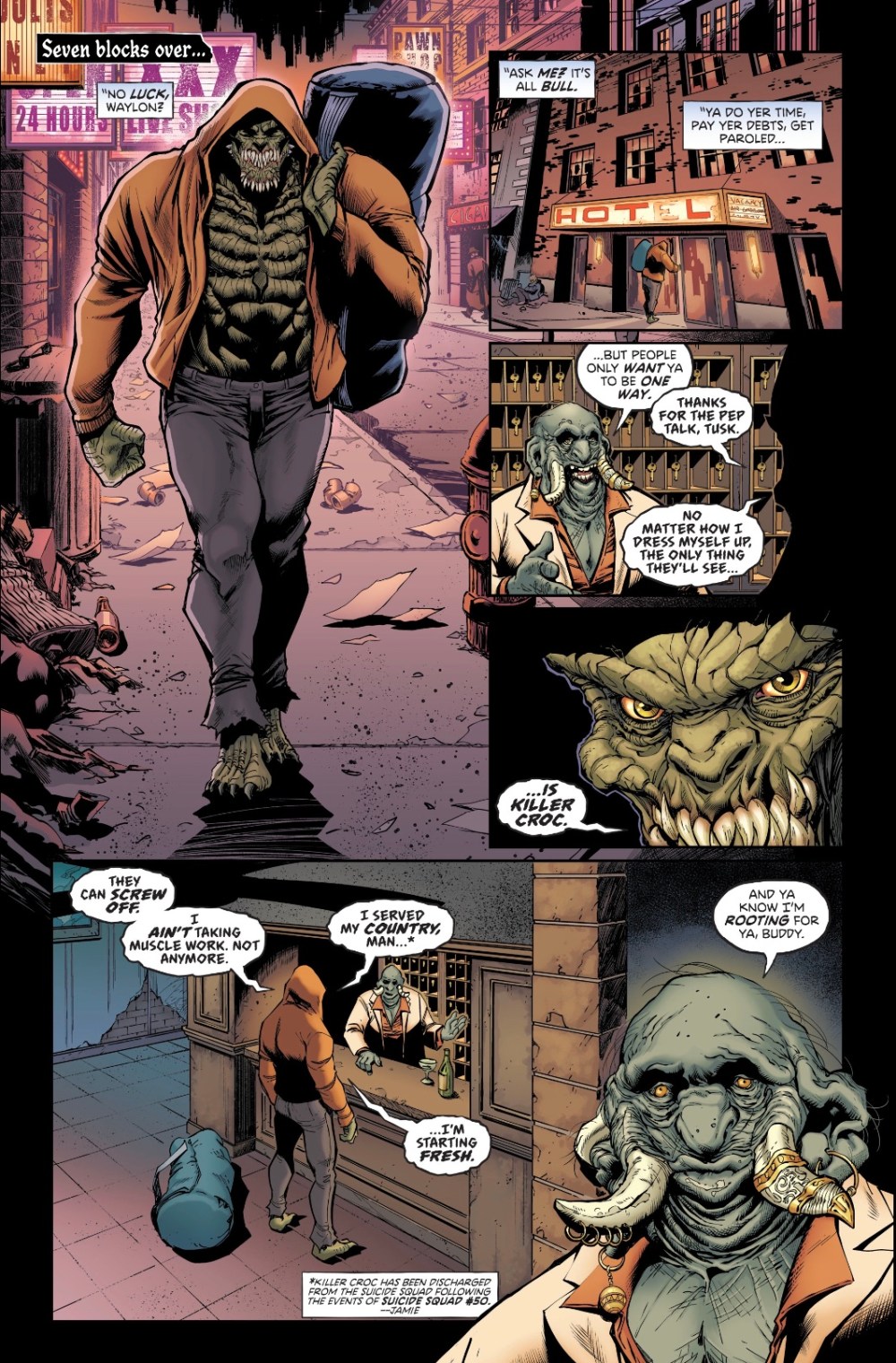 Killer Croc recently served with the Suicide Squad, resulting in a pardon for his crimes, meaning this is the perfect time for him to look for a new path. As I’m a sucker for bad guys seriously trying to go straight – think Clayface I in Detective Comics as opposed to readers being told the likes of mass murderer Magneto are actually pretty heroic – I’m rooting for him.