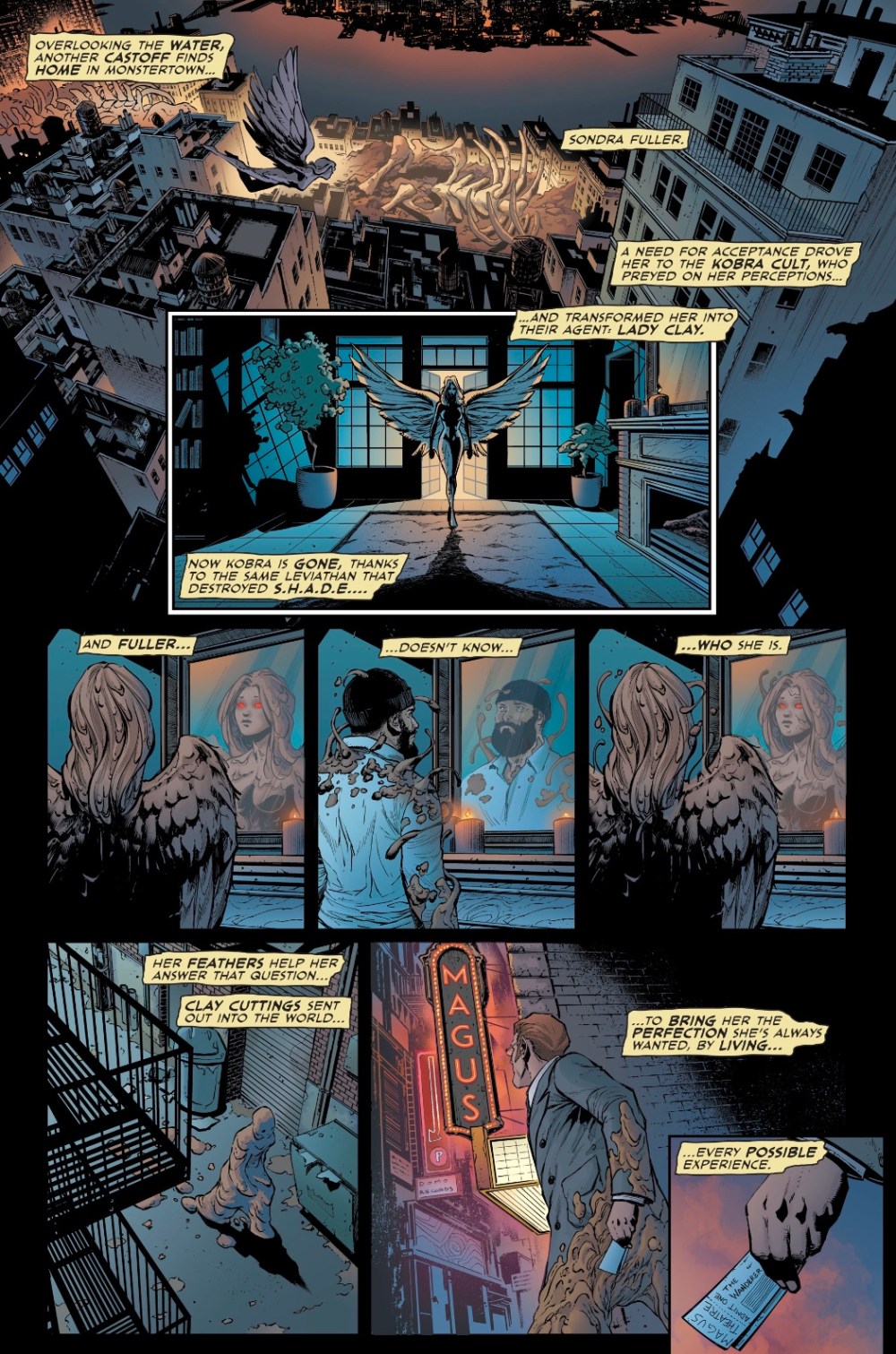 I don’t know why they’re called feathers, other than her first, winged, appearance, but Lady Clay’s “cuttings” are likely the similar to the extra bodies Basil made for himself in Detective Comics. (And is she the same clay lady that attacked the bat-group in that series? I didn’t realize she’d signed on with Kobra at some point…but there are a lot of Bat-books to keep track of and I haven’t even read Detective for a year or so.