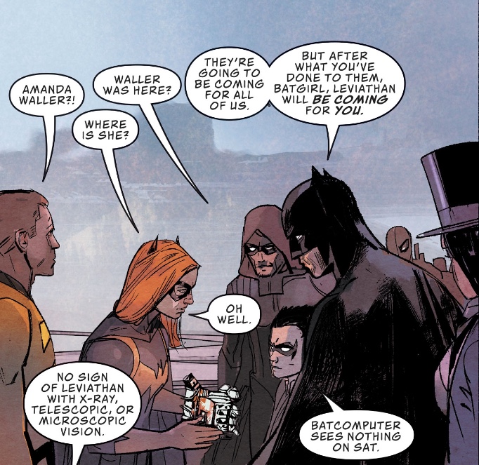While the mystery aspect didn’t land for me, I’ve enjoyed the Event Leviathan ride hugely. It’s been a fast-paced action thriller that’s had me guessing, and discussing, from start to finish. And as is often the case with Bendis scripts, it’s the little moments that have me grinning – Harvey Bullock’s backchat to Deathstroke; Talia’s inability to get through a single sentence without sounding like a particularly melodramatic Bond baddie; Batgirl’s insouciance around the idea of being targeted by Leviathan.