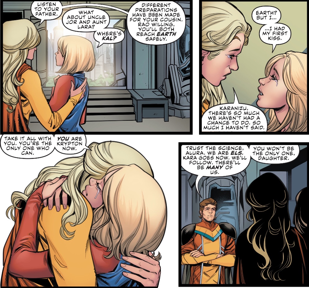 My favourite scene in the issue features the final words of Allura as Kara prepares for exile on Earth.