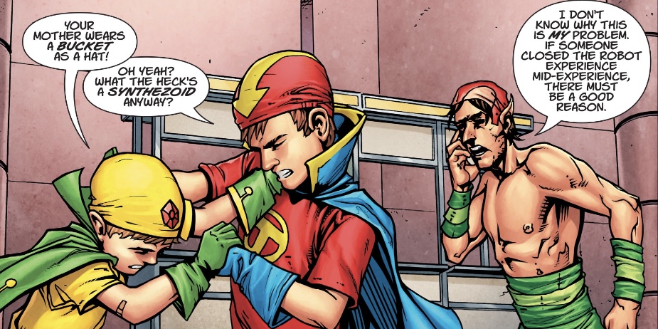 Who says they’re not doing DC/Marvel crossovers any more? Look, it’s Vision vs Red Tornado.