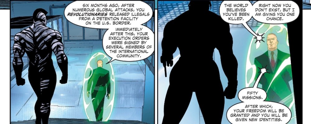Amanda Waller is gone. She’s ceded her job as Task Force X supremo to the mysterious Lok. And where it used to be that missions were voluntary – a super convict agrees to be a covert op for the US in return for remission – there are new rules.