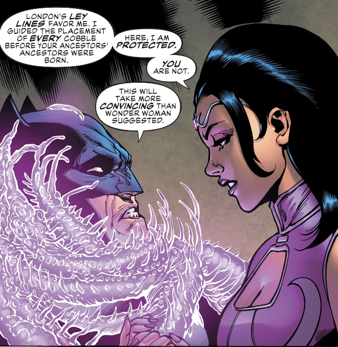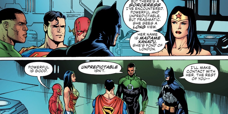 The less great… Madame Xanadu isn’t the mysterious interpreter of cards from Doorway to Nightmare here so much as just another mercurial enchantress, like Circe from Wonder Woman. Why the heck she’s acts like a pollock towards Batman I have no idea, but perhaps Venditti will tell us. I did like her sassy sorceress bit in Demon Knights back in the New 52, so it’s not like she has to stay tied to her mystic curio shop. Hand waving spells, though, seem so common.