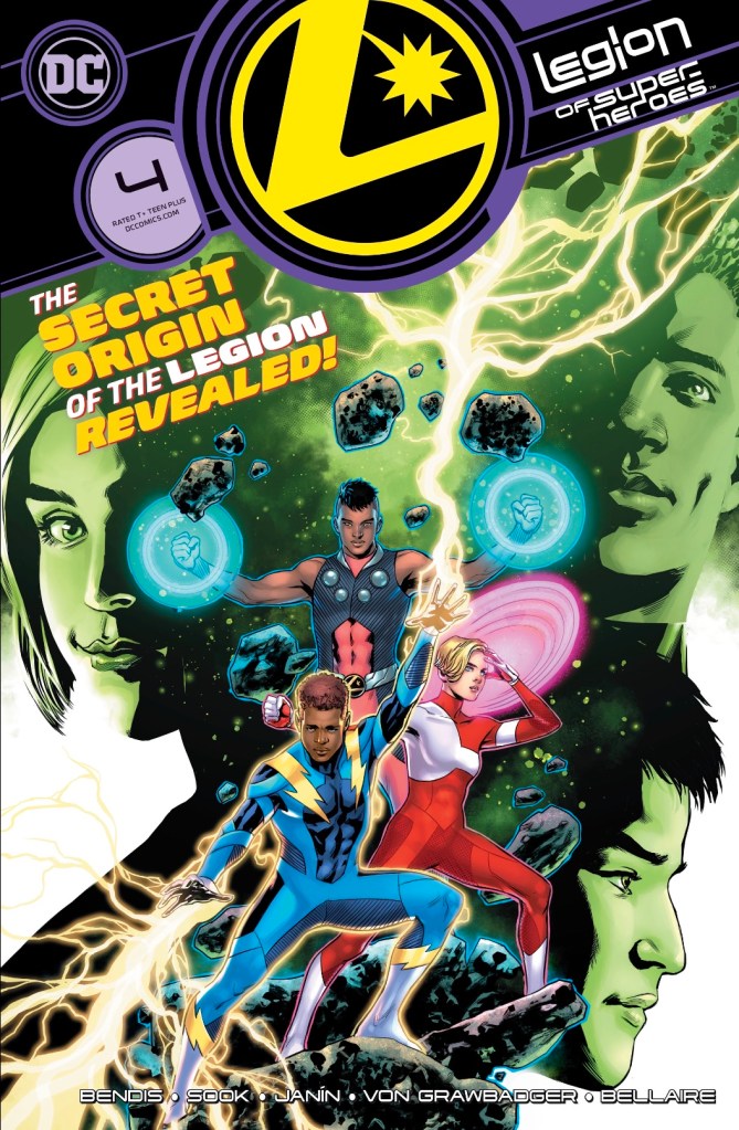 We probably get about half of the Legion origin in this issue, which is fine by me – I enjoyed the opening with Rokk, Garth and Jon chatting, and I’m glad the trident business isn’t forgotten. What we do get, I like – a few changes to the old stories here and there, which is fine given this is, what, the Legion’s fifth official origin (original, post-Mordru, Zero Hour, Threeboot… I’m probably missing a couple!). There’s enough of the traditional stuff to keep me happy, enough new business to prevent me being bored, and plenty of nascent Legion spirit. Good job, Brian Bendis!