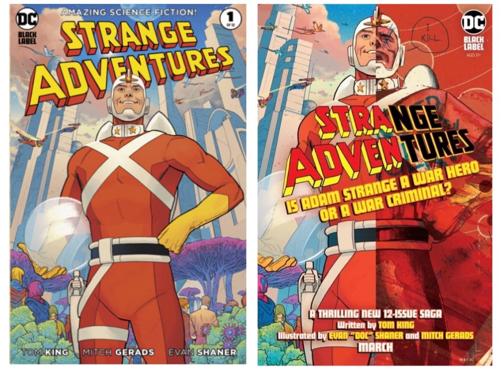 I hadn’t read the publicity, but concluded the Shaner bits set on Rann are showing the story as Strange tells it in his book. So my guess would be that it’s not Gerards=present vs. Shaner=past. I can imagine we could see earth scenes from the past drawn by either of them (Shaner from Strange’s telling of his times on earth in between trips to Rann) vs. Gerards from the reality of the time), and Gerards will probably draw some “real” flashbacks on Rann too. So really it’s Gerards=truth and Shaner=memoir, and we’ll eventually see how closely they track.