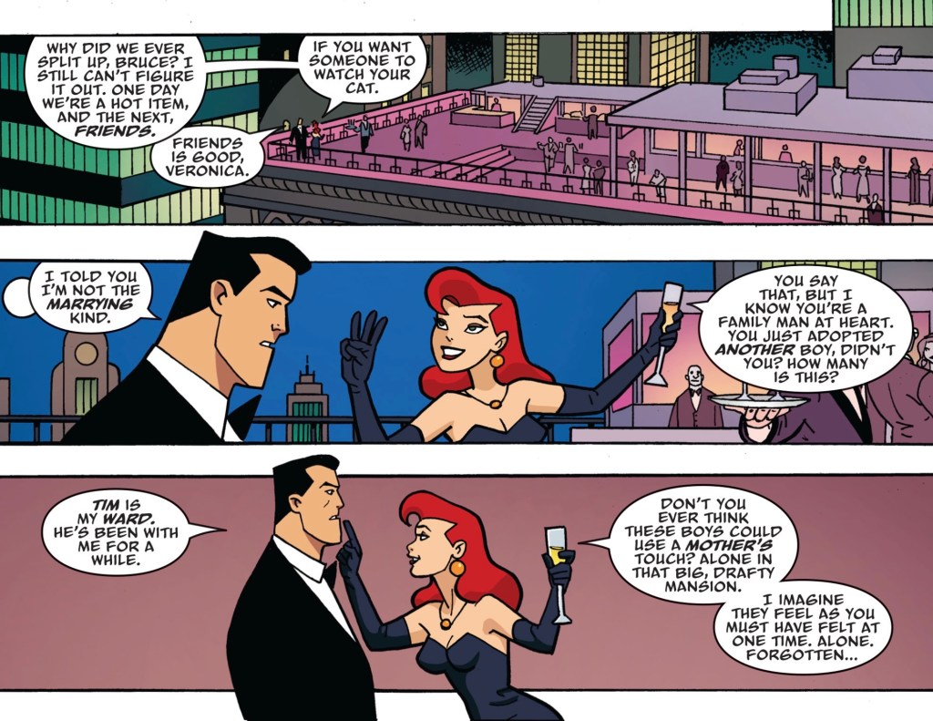 Later, Bruce Wayne has more trouble to contend with, but at least socialite Veronica Vreeland actually likes him.