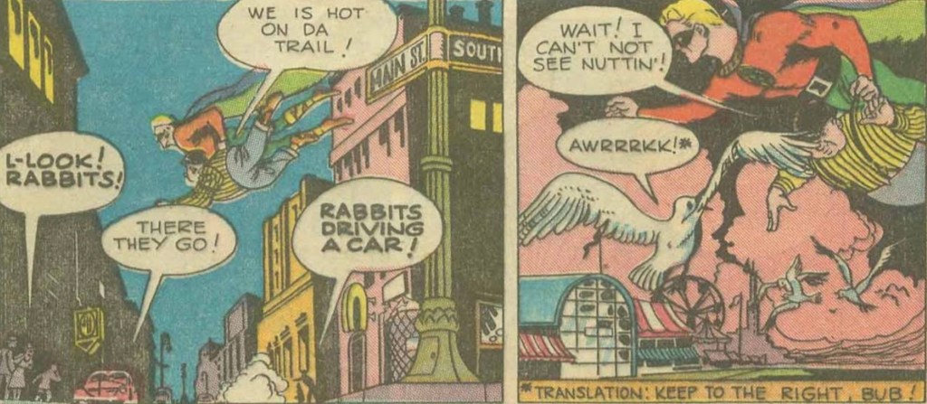 All-American Comics #80, while not featuring children dipped in chocolate and eaten by a giant rabbit, does contain pretty disturbing imagery, as Green Lantern and Doiby Dickles face ‘Long-eared larceny’.