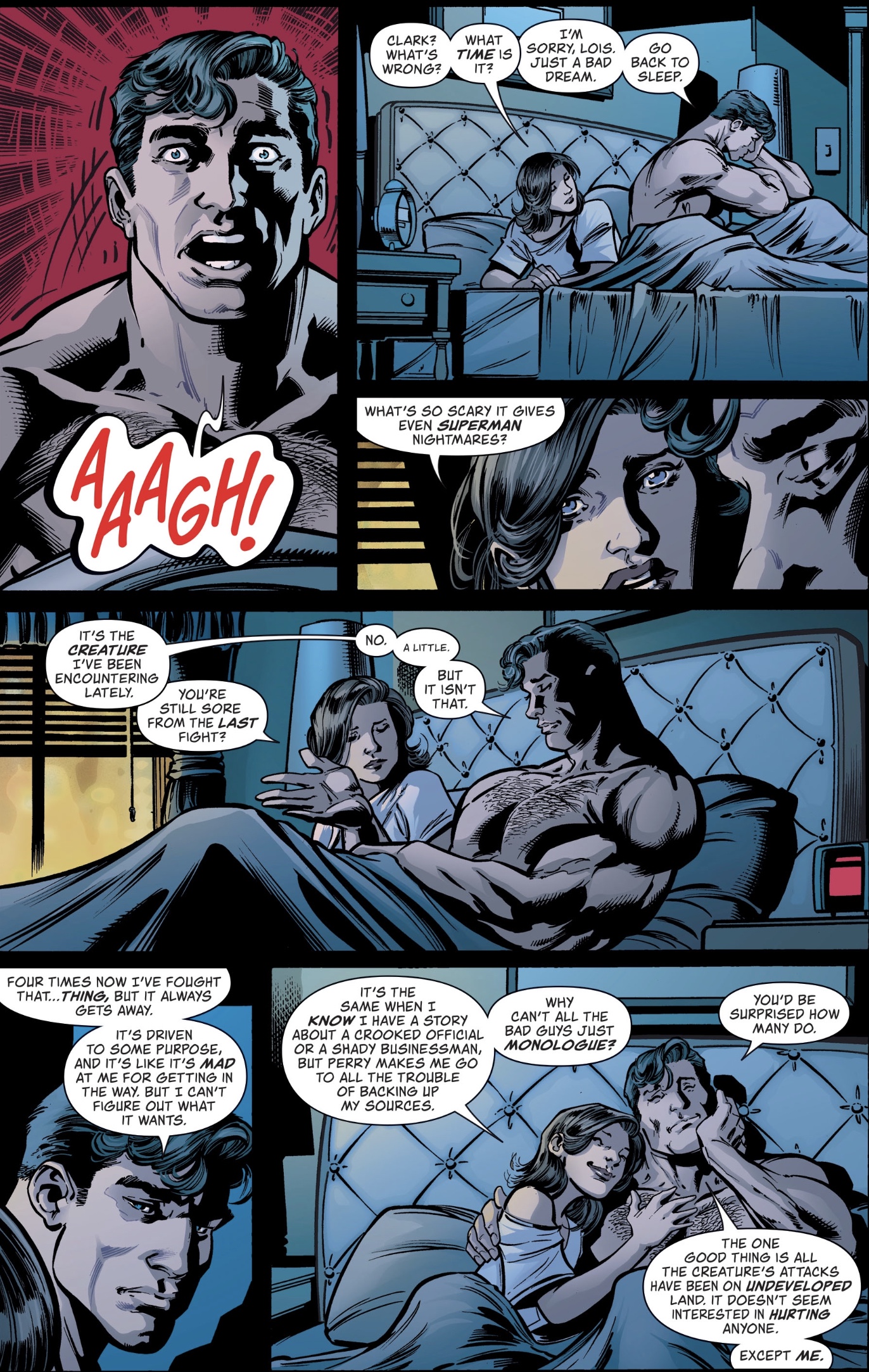 You will have noticed that rumbling behind Clark – it’s time for run-in number five with the creature that haunts his dreams.