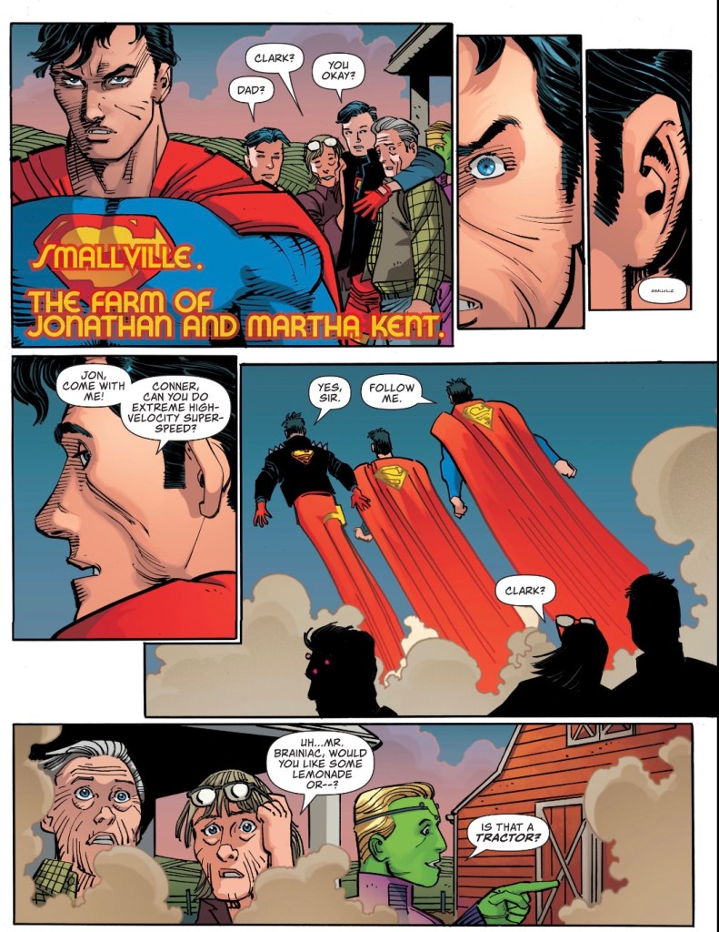 With Ma and Pa Kent, the artists have Licence to Wrinkle, meaning they look like mummies. I’ve seen Romita and Janson do so much better over the years, what is going on in this comic?