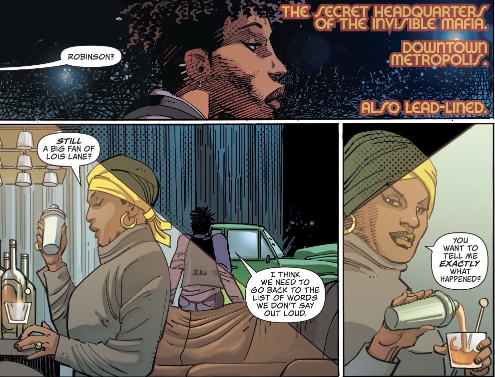 ‘Clark Kent walked into a bar.’ It sounds like the beginning of a joke, but it’s no joke for the Invisible Mafia members when Clark Kent, newly revealed as the Man of Steel, shows up. Why is he there? Let’s go back a few pages, to the start of Action Comics #1023.