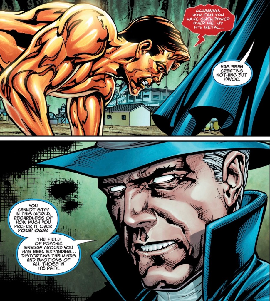 The arrival of the Phantom Stranger to explain that Nth is giving off psychic energy that influences people – even artificial ones – to make bad decisions is appreciated; it always seemed odd that someone as sharp as Tina would fall in with a guy who never looks less than super-shifty.