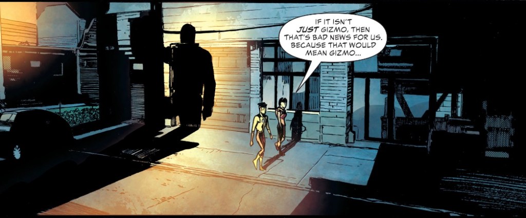 Well, it looks like the Titans were on the ball as regards Gizmo. But is the Fearsome Five member acting alone? The answers come in this pen-penultimate (that’s probably not a thing) issue of the latest Titans book. I won’t say who the shadowy type is because the reveal makes for a superb page by illustrator Javier Fernandez and colour artist Marcelo Maiolo. While writers and artists come and go, the latter has been a consistent presence in this book, his lighting always impressing and his delight in bright hues giving the series a distinct visual identity. It’s one I love and whoever ‘inherits’ Maiolo when this series goes away in November is very lucky.