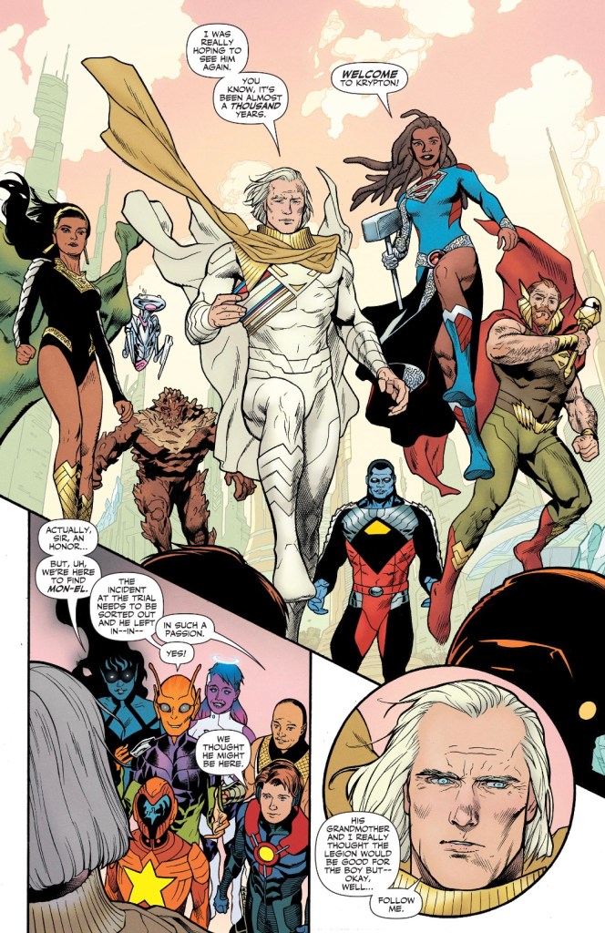The most attractive spot we see is New Krypton, where Legionnaires are looking for Mon-El after he quit the team in a snit over the addition of 21st-century native Jon Kent.