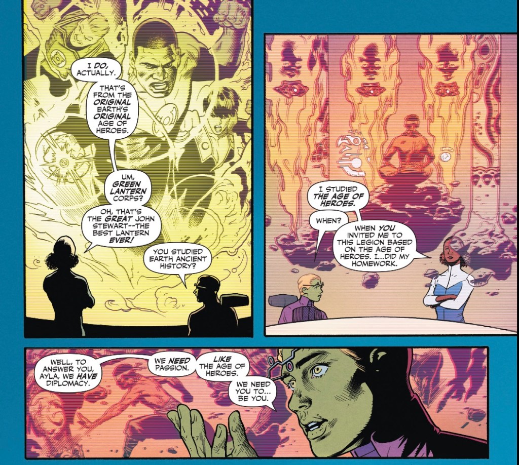 1. I loved this issue too and this take on the Legion. My preferred version of time travel helps me cope with losing the Retroboot and 5YL and to accept this one wholeheartedly. I think DC shows a gross misunderstanding of time travel theory by putting every Legion on a different Earth. The way I see it, if certain things happen on a Tuesday, you wind up visiting the Archie Legion. Things happen the next day and you wind up with 5YL and so on. They’re all out there waiting for us, it just depends on if current events have allowed you to travel to the one you want. (It also helped me cope with the classic Guardians of the Galaxy being able to visit the present despite Vance Astro making it impossible to be the Marvel Universe’s future. I just pictured them traveling back to before young Vance’s future being changed and then back up to to the different future from there)