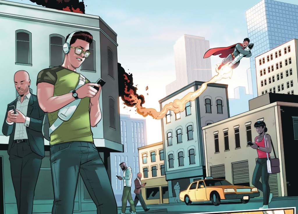 … or not. Everyone is gazing at their phone, unlikely to look up unless Twitcher tells them Superman is above them with a bomb. Very 2020.