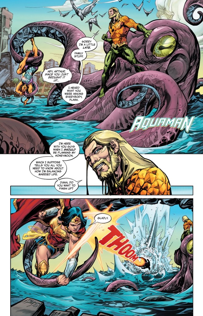 Well, if Barry Allen isn’t making plans to propose to Iris West, I’d be very surprised. But as I’ve just read a four-parter in his own book titled ‘With this ring’, I feel safe in predicting a wedding soon. It seems to be matrimonial season for the JLA, with Aquaman and Mera having got hitched just last month, as referenced by Arthur, above.