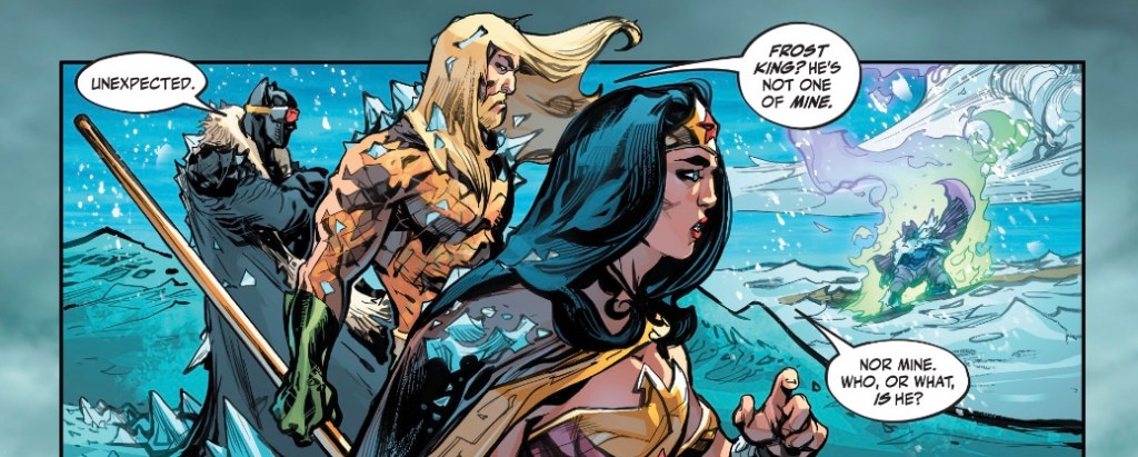 It’s absolutely the stuff I want from a JLA comic — a big threat, some continuity nods that it’s happening “now,” fun character interplay, superheroic action. As an added plus, the oppression of the global winter feels very timely, not so much for the temperature, but the fact that we’re all supposed to stay indoors for who knows how long.