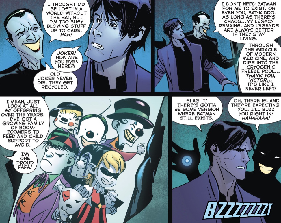 I’ve no qualms about the next story, a visit to the Gotham By Gaslight earth, designated 19, where a criminal Plastic Man tries to ruin a Christmas act of philanthropy and one of the regular Gotham gangsters gets in his way. Oh, and Batman is here too. John Layman’s script is as playful as it is measured, while the brilliant art team of illustrator Dani and colourist Mike Spicer bring the Mike Mignola vibe.