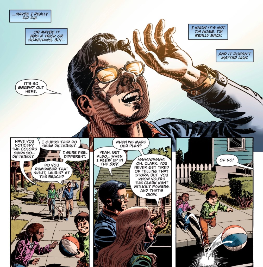 The long nightmare is over. Earth Prime is back. And if not having super powers is the price he pays for the return of an entire world, for a life with his loved ones, Clark is willing to pay it…