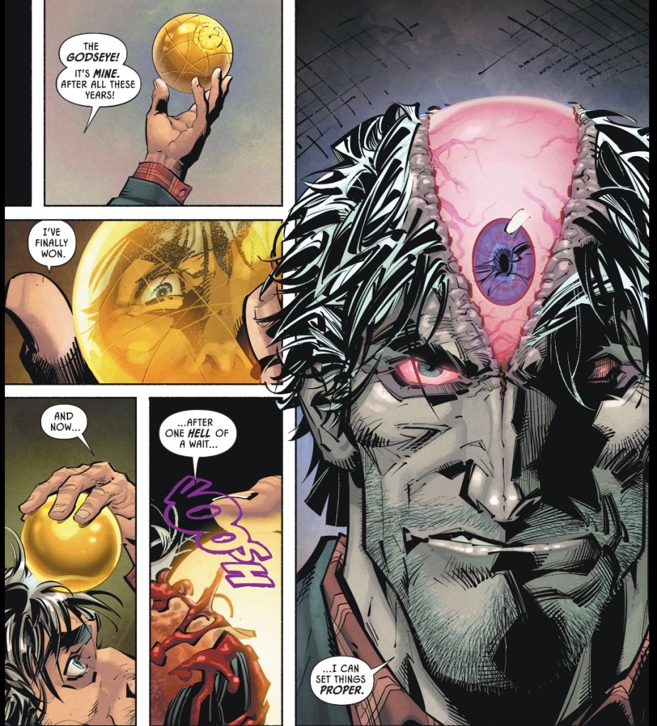 And the first out of the box, the Godseye, brings a decent threat, as the newly named Three-Eyed Jack sets about transforming everything around him. Jinny is gutsy and resourceful, Lady Bird is the smart-talking sidekick and Alex… well, he’s just kinda there. It’s not like he isn’t used, but where Lady Bird’s Jewish background informs her character, Alex is just a big guy in a sweaty vest.