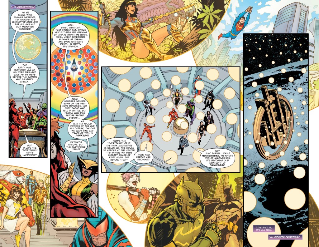 Man, if Yanick Pacquette had been the regular artist on this, I’d have actually READ this series. That party is GORGEOUS. As it is, I welcome every spoiler I can get to orient myself for the coming Infinite Frontier, and hope for the best. I’m sure I’ll read this somewhere down the line, but I’m happy enough to wait.