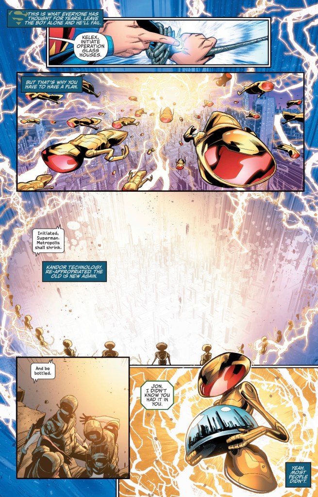 Jon shrunk Metropolis without a plan? How was he thinking of supplying them with food & water at the least? Whatever happens next issue, which will most likely be about the power of heart winning all, that internal monologue is going to be hard to convincingly walk back.