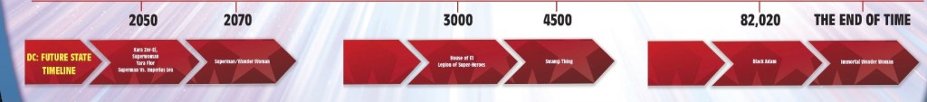 Before DC’s two-month Future State event began the company produced a free magazine, with features about the characters. Almost hidden at the bottom of a couple of pages was a timeline, making it clear that different comics were happening in different years.