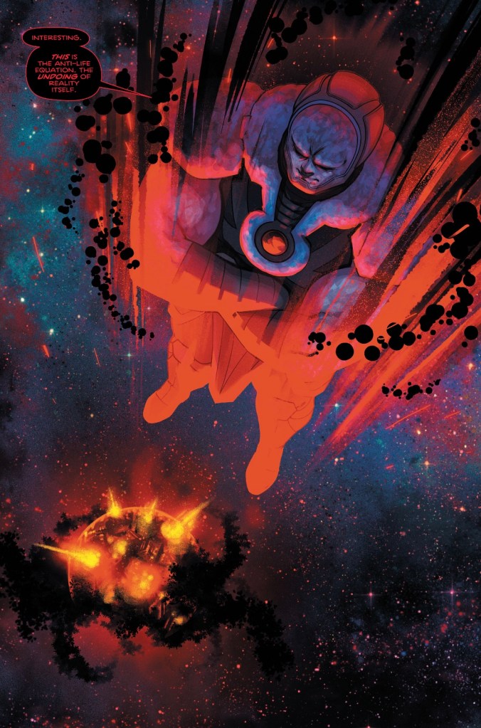 We don’t learn what happened to Man, but I suspect they left to avoid Diana’s lectures, with her talk of ‘solipsistic vanity’ and the like. Faring better under writers Becky Cloonan and Michael W Conrad’s is Darkseid; he’s a fearful affair, utterly disdainful of Big Barda and Orion’s warnings about something called The Undoing, not caring what happens to the worlds he once wished to conquer. The Amazon spokeswoman makes a big impression in just a couple of pages, and I hope Cloonan and Conrad have plans for her when they transition to the regular Wonder Woman book. But I really hope they tone down the poetic writing, give Diana some fire, and the humour of the Golden Age heroine.