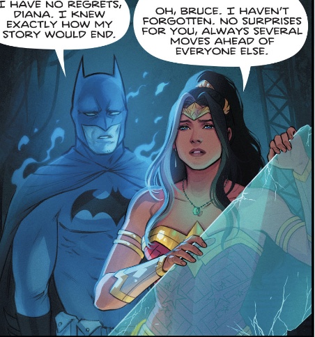 Bartel’s Diana is stunning. It’s just a shame that so often the script has her seeming defeated by life. Over in Superwoman, Kara is inspired by a dead dog; here, Diana needs a pep talk from a Batman hologram.