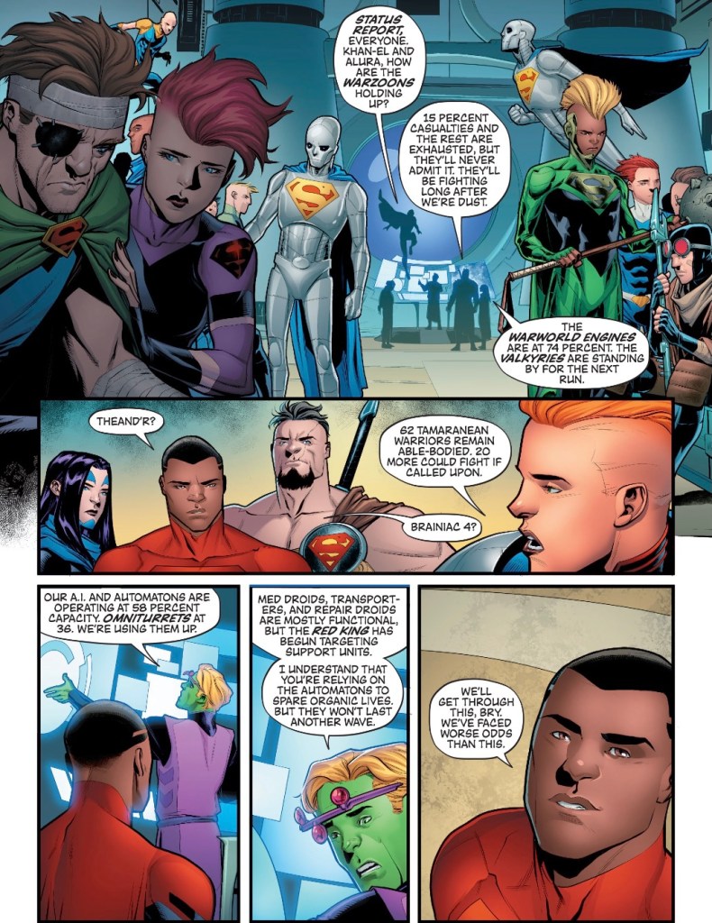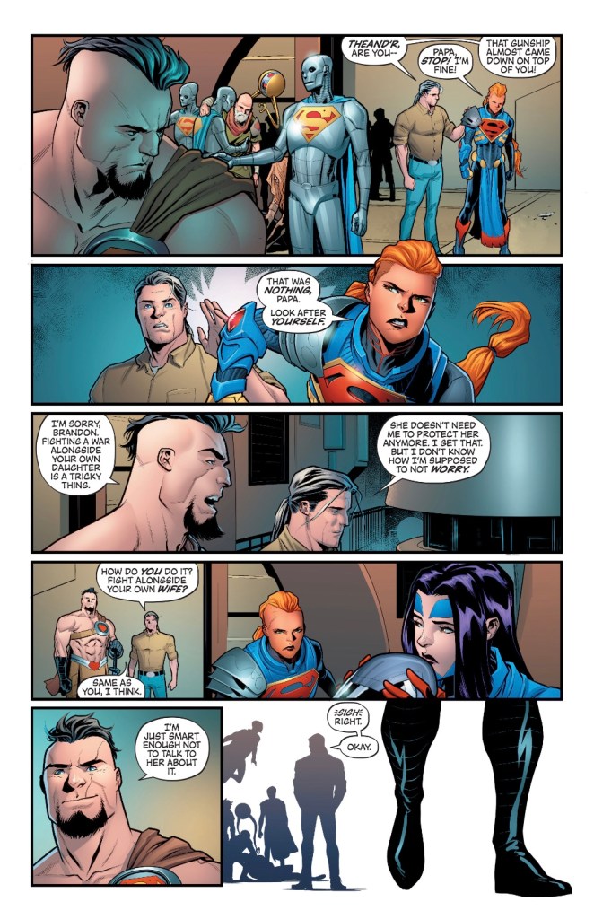I believe Kennedy Johnson has served in the US military and he certainly seems to enjoy writing about war – last week it was gladiators, this week it’s superheroes. His experience may bring interesting perspectives but I really hope his tales in Superman and Action Comics don’t go as deep into battle tactics as does this story.