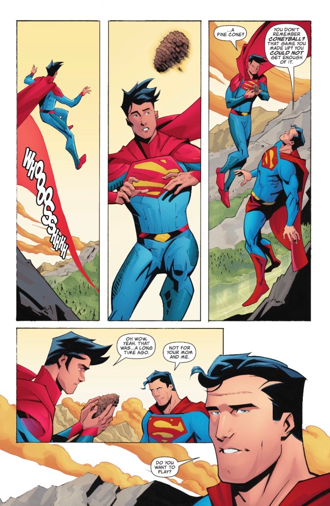 The best scene in this first story, ‘The Golden Age’, is Superman trying to make a connection with Jon, having missed so much of his childhood. The exchange feels real – hopefully we’ll have more conversational scenes in Johnson’s run.
