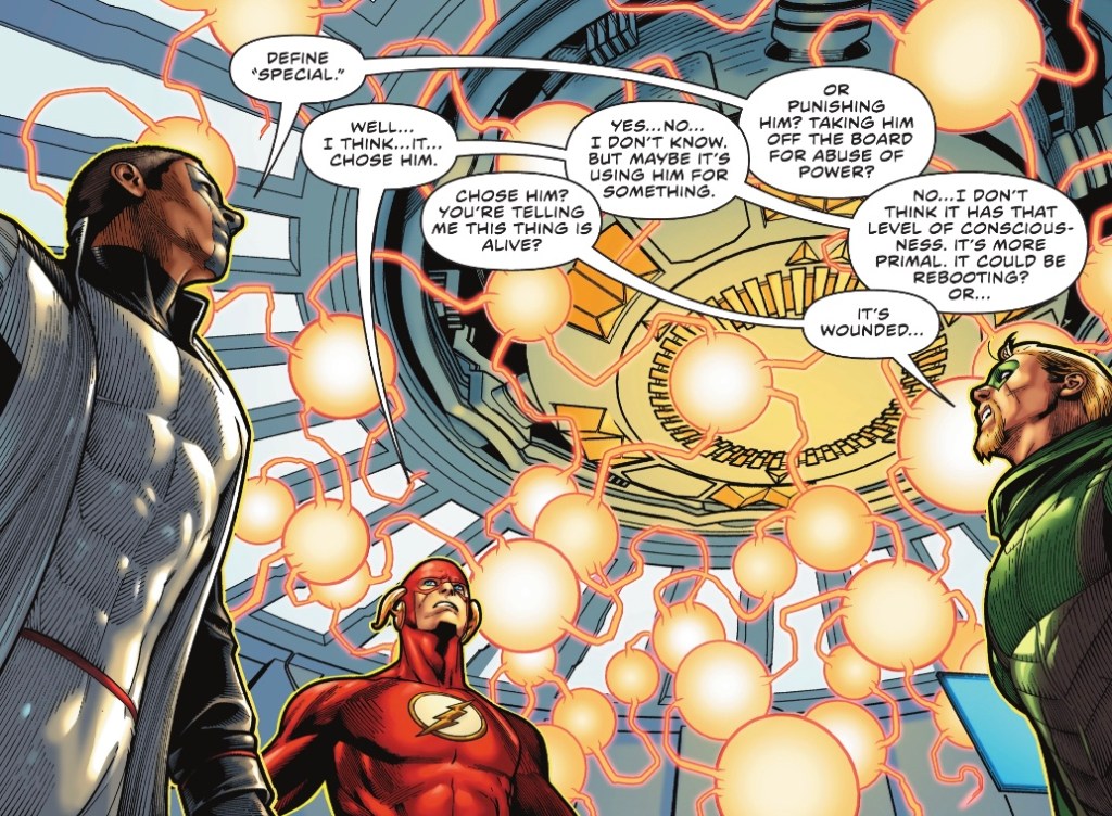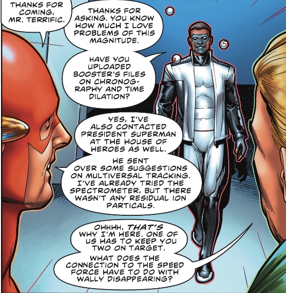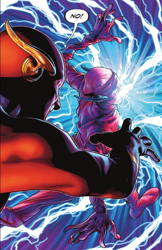 There’s another surprise from Wally. He wants to give up his powers, to take away the temptation to run off on adventures every five minutes. And that means severing his connection to the Speed Force. To do this, the two Flashes must hit the right pace, allowing Barry to cut Wally off from the source of super speed. But something unexpected happens.