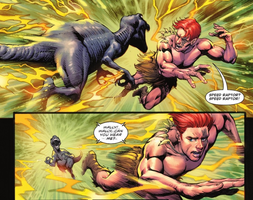 As it turns out, he’s ‘simply’ been tossed back to dinosaur days and he still has some super speed – but he’s not the only one.
