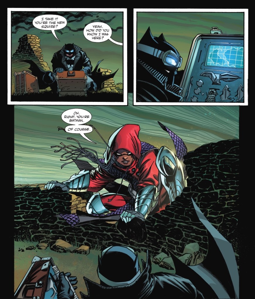 I felt like this is supposed to be a much, much older Bruce, but how old was Beryl as Squire? She doesn’t look that old as Knight. Perhaps this could be 20 years later. Regardless of how much later, it’s an Elseworld. In the regular titles, the Tynion-Bat-family thing is ramping UP, not down.