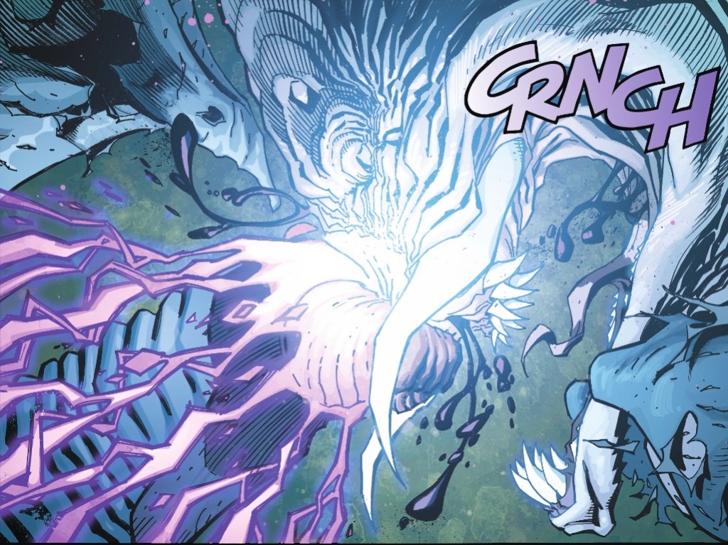 BTW I can’t make out much, but can see two of Batman’s gloved fists, glowing pink, right in the center of that panel. And one of his legs extending straight down from there. I guess the Ghost is leaning over from the panel right and his head is in Bruce’s torso, and his face is obscuring Bruce’s face. But maybe I’m just hallucinating. Nevertheless, it’s awful