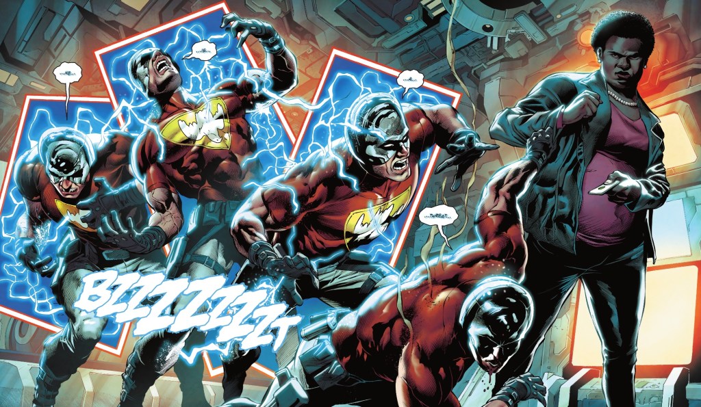 This is quite the action issue as villains and heroes and anti-heroes fight for supremacy – or just survival – in Waller’s web of lies and pain. Usually I’d moan about how a character who seems like a baseline human could hold out against the likes of Superboy, but we don’t know Red X doesn’t possess meta-abilities. Also, he’s been compared favourably to Batman, and the Caped Crusader, according to DC, can hold his own against anyone.