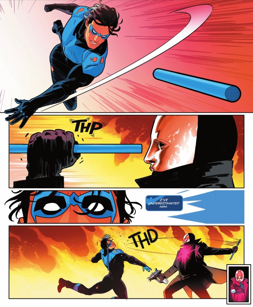 Loved the dock scene, loved the clever way Heartless evaded Dick’s mask camera, loved the banter about Bitewing’s name. Loved the difference between someone enhanced with no training, and someone expertly trained, and how they can each be a threat. This is A+++ superhero comics, all the way.