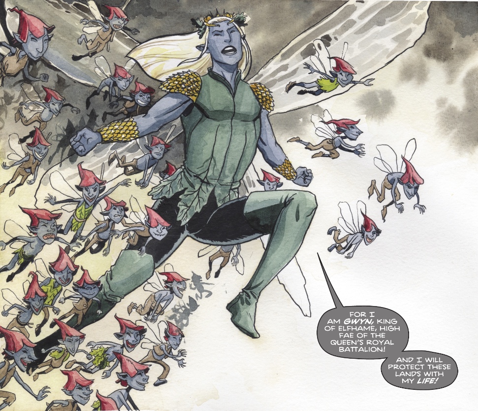 Said titchy fairies really do look great as depicted by Thompson, who’s working in full colour. And the bigger folk look fine too.