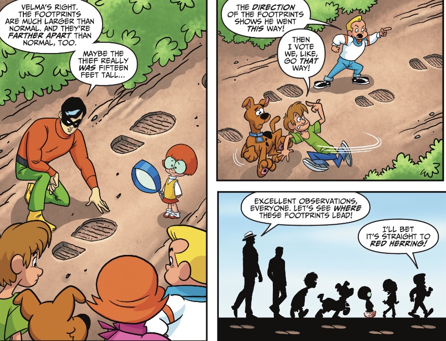 Oh, the irony. And there’s more in another thoroughly delightful story from writer Sholly Fisch and artist Scott Jeralds. The Easter eggs, in-jokes and references to old Scooby adventures, Batman stories and the wider DC Universe come thick and fast – you don’t need to get all the nods, but they certainly enhance the story if you do.