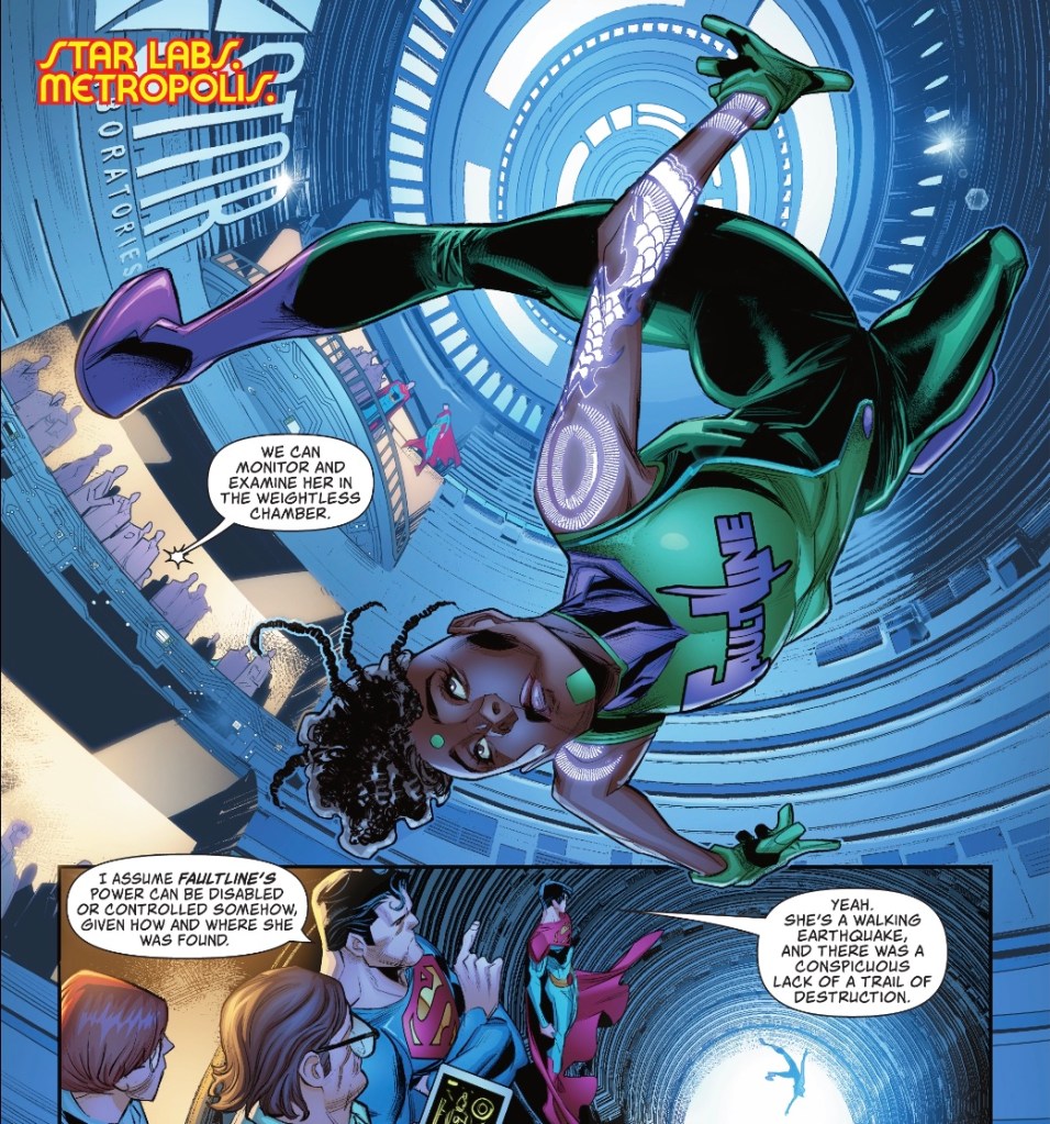 In Central City, Superman and son Jon rescue hundreds of people – and pets – from a building hit by an unnatural disaster.