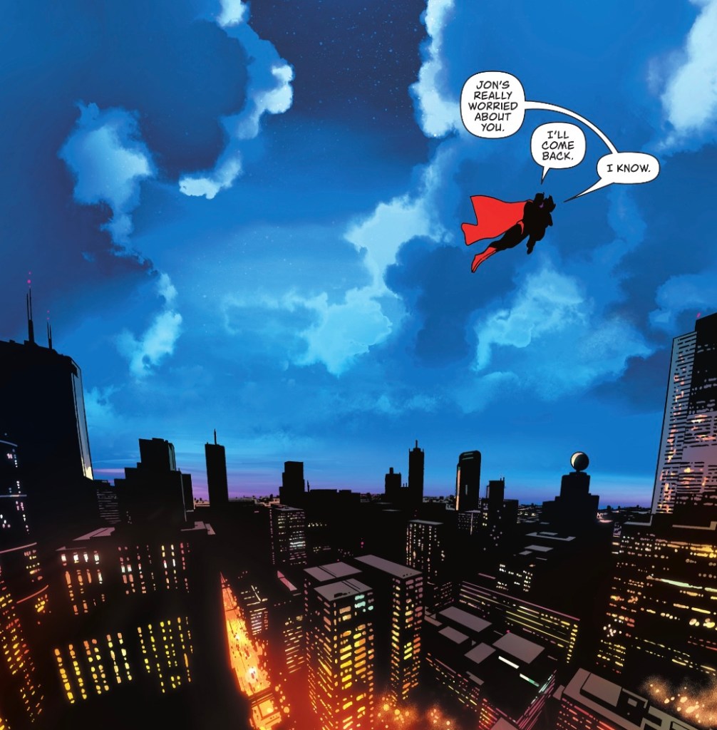 Kennedy Johnson continues to impress with his sharp scripting – the funeral scene is touching, a father-son talk rings true and the Lois moments are exemplary. Here’s my favourite panel of the issue