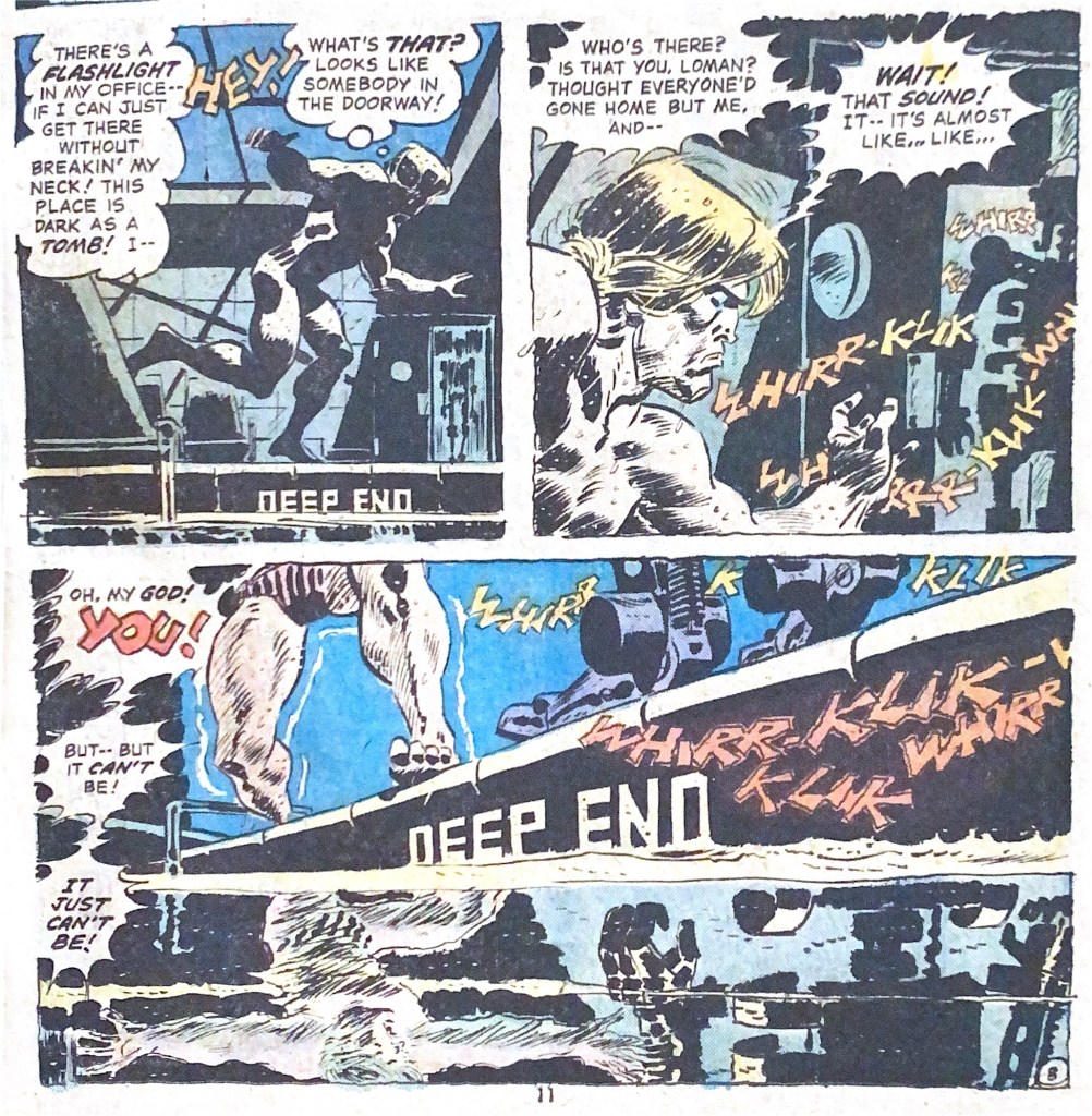 New story ‘Night stalker in Slim City’ is an efficient, if unsurprising, potboiler from young Turk David Michelinie and veteran Frank Robbins. While his art didn’t always suit superheroes, Robbins nails this tale of metal vengeance at a gym. His understanding of musculature would put many a fan favourite to shame.