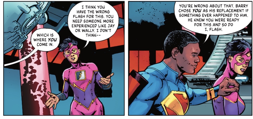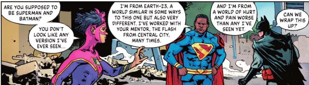 This one hasn’t grabbed me as much as Infinite Frontier — possibly because the characters as a whole mean less to me than the hodgepodge of IF stars. (Earth 0 protagonists will always matter to me more than alt-earth versions, even ones I’m familiar with. The only exception’s ever been pre-Crisis Earth 2 characters.)