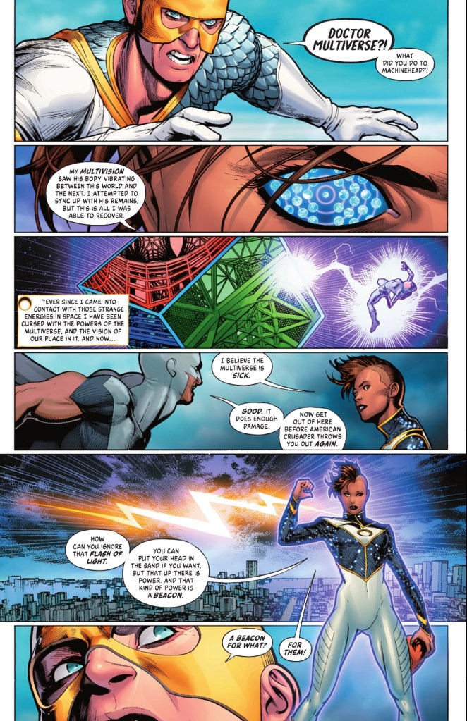 Meanwhile, over on Earth 23, the super-team known as the Retaliators learn they have to avenge the death of teammate Machinehead.