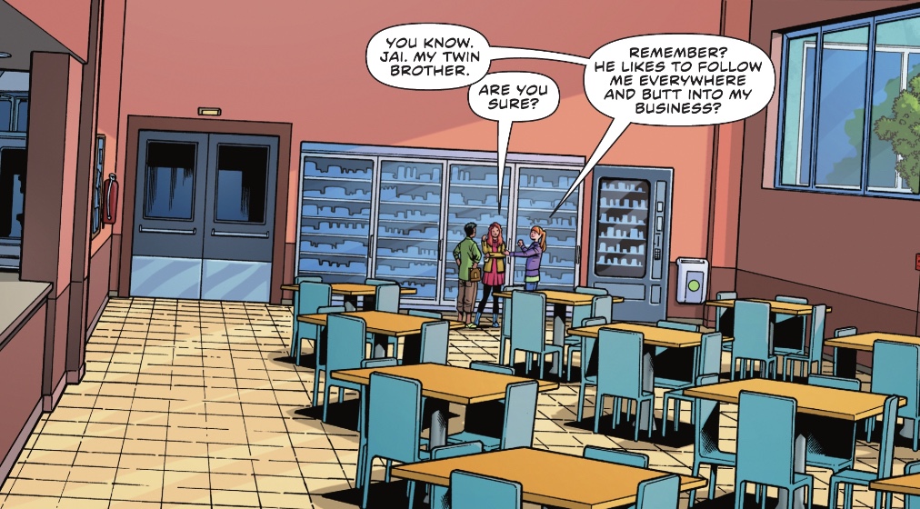 Best of all, Wally shares the pages with his kids. Irey had a spotlight a few issues ago, and now Jai takes control of the narrative – well, at least the Earth-set moments – via his diary… sorry, Action Log. Once upon a time Jai had super-powers, but he lost them. He’s not jealous of Irey, who retains her Speed Force connection, though, finding his joy in observing the world with a wry eye.