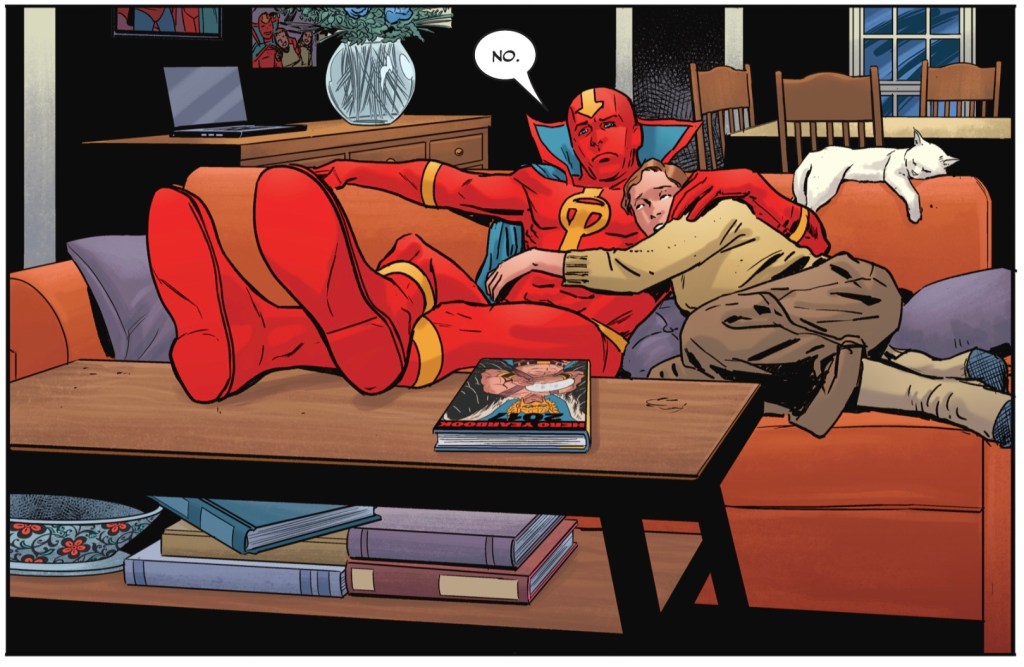 Oh, he definitely had mental fortitude and hope as an active hero. And I don’t think Russell and Lieber are attributing his current condition to any failing on his part, just a history of head injuries and some coincidental poor mental health as he aged. Time diminishes us all, in one way or another. It’s not a story we get told a lot in comics, and it hits harder because of its rarity.