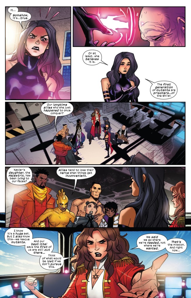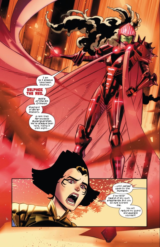 Wheels within wheels. It’s the potential intrigue that will get me to read the second issue because the Shi’ar shu’arent aren’t going to do it.