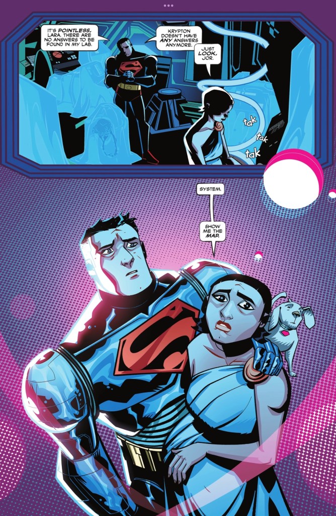 Anyone even vaguely familiar with the Superman Legend, though, knows where Zod is going. Venditti’s script tweaks details to make this more a story for today, but the big beats remain the same. Jor losing hope, for example, is a passing thing; by story’s end, with Lara’s help, he sees that not all futures are closed to his family line