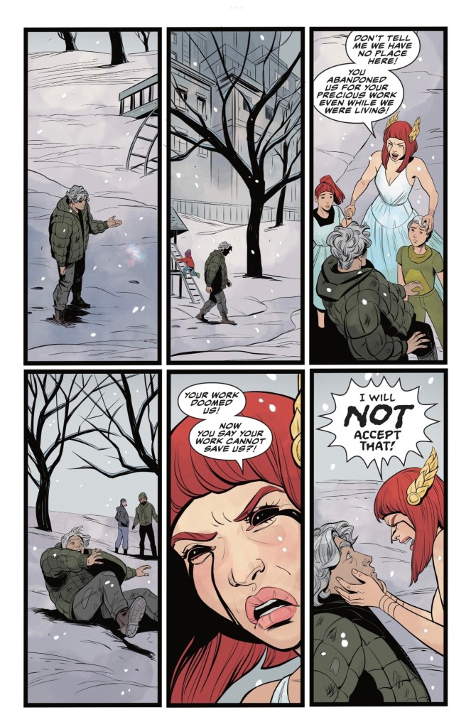 Plus, catching every villain you can distracts you from worrying about problems closer to home, in this case the disappearance of senior Flash Barry Allen and Flash of China Avery Ho. Jeremy Adams continues the great job he’s doing in the regular Flash series; as well as the expected excellent characterisation he treats us to a visit with Iris West Allen and name-drops one of DC’s most obscure cities. Mind, he loses a point for assuming that where Wallace doesn’t know what the game of Whack-a-Mole is, the reader does. I was somewhat bamboozled by a full page of the speedsters beating up Giganta at numbered points. The art by Rosi Kämpe has lots of energy, that page a few lines back isn’t representative of the look of ‘Life of Purpose’ – try this.