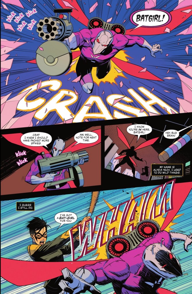 A lovely surprise is the inclusion of a strip starting Alysia Yeoh, former flatmate of Barbara Gordon from her Burnside days. I thought she had been consigned to limbo, but here she is defending an injured Batgirl from Killer Moth in a sharply scripted piece with outstanding visuals. She does well via a weapon familiar to readers of the old Bombshells series, but the ending hints that we have yet another Gotham vigilante on our hands. Please, just no! Let someone known to the Bats have a relatively sane life, we already have a couple of dozen sidekicks. Alysia is a brilliant trans woman who has been through a lot, she’s already a hero – leave her be, DC!